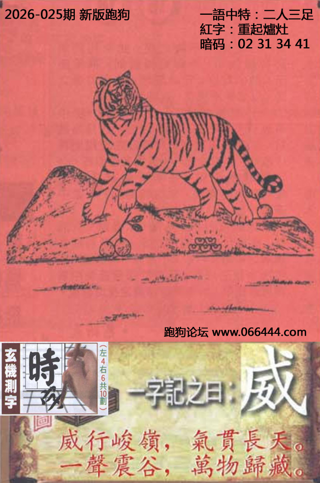 025期新版跑狗一字記之曰:【威】