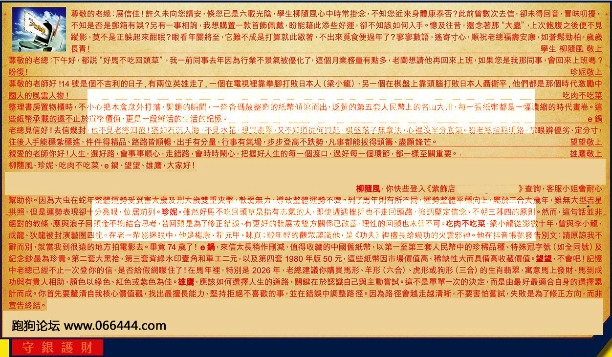 【1】.尊敬的老總:展信佳!許久未向您請安,倏忽已是六载光陰,學生柳隨風心中時常掛念,不知您近來身體康泰否?此前曾數次去信,卻未得回音,冒昧叨擾不知是否是郵箱有誤?另有一事相詢,我想購置一款首飾佩戴,盼能藉此添些好運,卻不知該如何入手。憶及往昔,還念著那“大蟲”,上次飽腹之後便不見蹤影,莫不是正躲起來酣眠?眼看年關將至,它難不成是打算就此歇著,不出來觅食便過年了?寥寥數語,遙寄寸心,順祝老總福壽安康,如蒼鬆勁柏,歲歲長青!