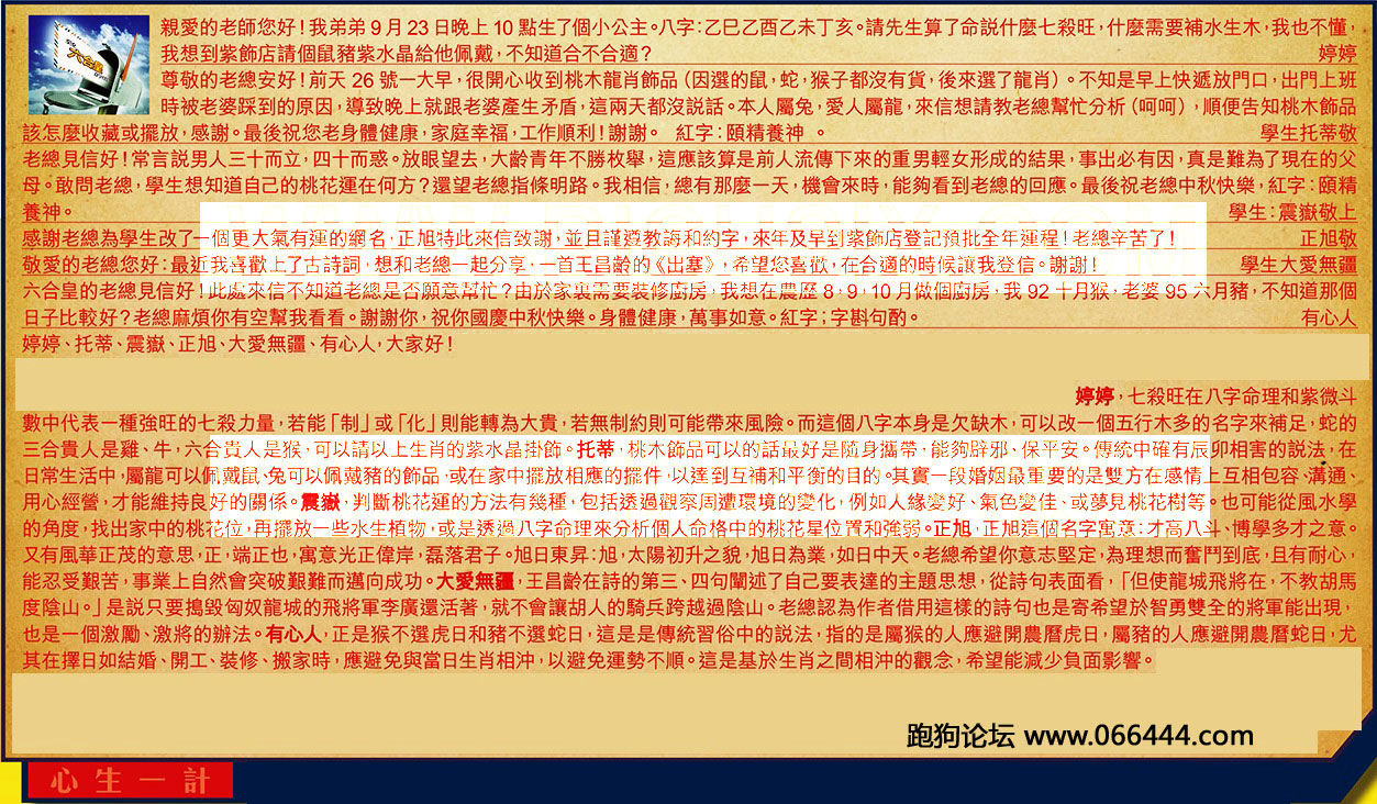 【3】.老總見信好!常言說男人三十而立,四十而惑。放眼望去,大齡青年不勝枚舉,這應該算是前人流傳下來的重男輕女形成的結果,事出必有因,真是難為了現在的父母。敢問老總,學生想知道自己的桃花運在何方?還望老總指條明路。我相信,總有那麼一天,機會來時,能夠看到老總的回應。最後祝老總中秋快樂,紅字:頤精養神。 學生:震嶽敬上