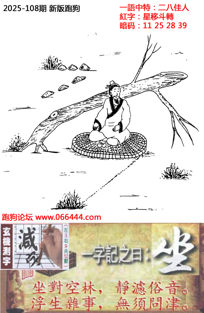 108期新版跑狗一字記之曰:【坐】